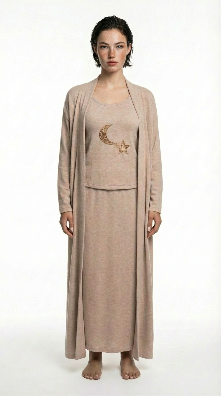 Beige Embroidery Kaftan - Jersey fabric