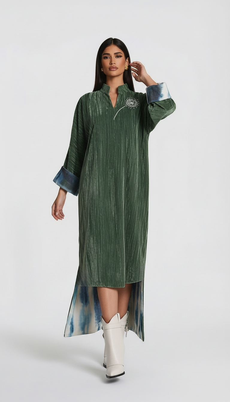 Forest Green Velvet Kaftan – Modern Straight Cut